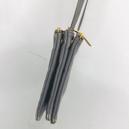 Celine Grey GHW Large Trio Lambskin Monogram Logo Shoulder Sling Bag / Pouch Clutch Case