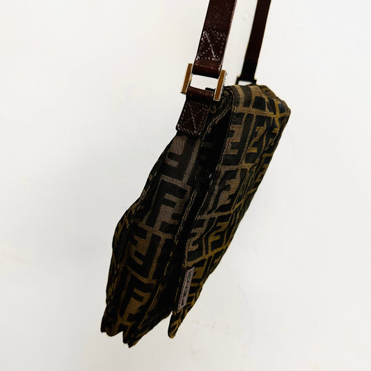 Fendi Brown FF Zucca Monogram Logo Pochette Baguette Hobo Shoulder Bag