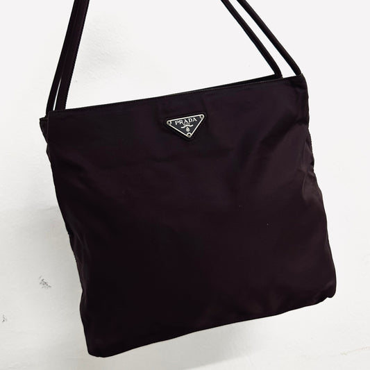 Prada Tessuto Dark Brown Classic Logo Nylon Shopper Shoulder Tote Bag