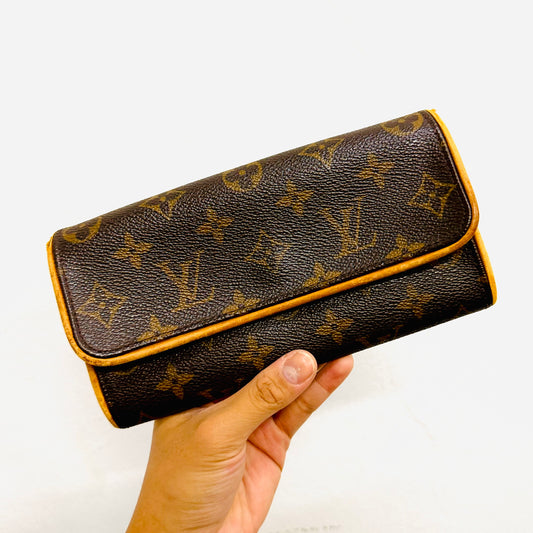 Louis Vuitton LV Pochette Twin PM Monogram Logo GHW Shoulder Sling Bag Pouch Clutch