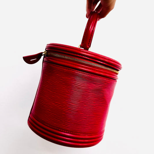Louis Vuitton LV Cannes Red GHW Epi Leather Monogram Logo Top Handle Vanity Case Bag
