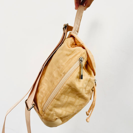 Fendi Cream Beige / Pink FF Zucca Monogram Logo Backpack Flap Drawstring Bag