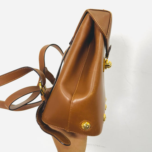 Salvatore Ferragamo Kelly Caramel Brown GHW Monogram Logo Smooth Leather Backpack Flap Bag