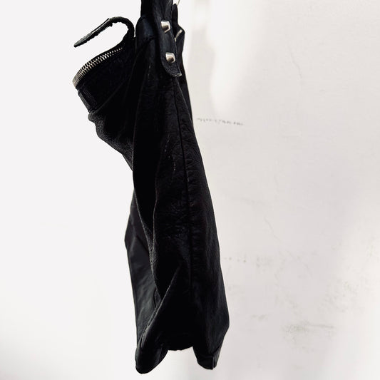 Balenciaga Black Arena Day Classic Giant 12 Studs Hobo Baguette Leather Shoulder Sling Bag