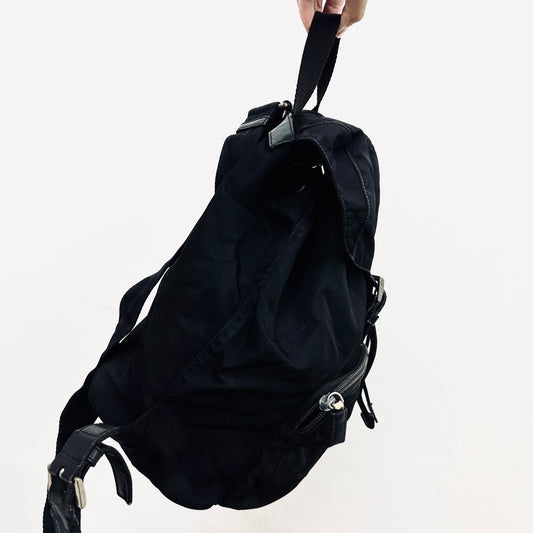 Prada Black Monogram Logo Tessuto Classic Nylon & Leather Backpack Bag