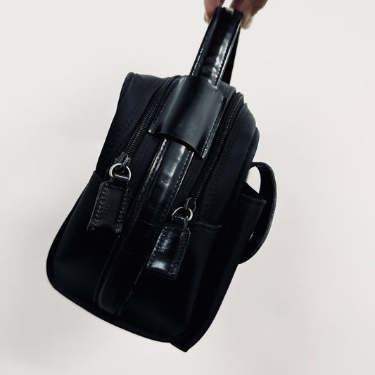 Prada Black Tessuto Classic Monogram Logo Utility Toiletry Top Handle Bag