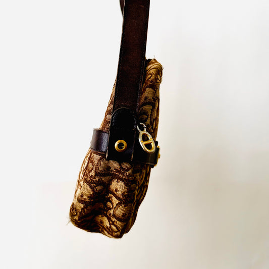 Christian Dior Brown GHW Oblique Monogram CD Logo Zip Shoulder Sling Bag