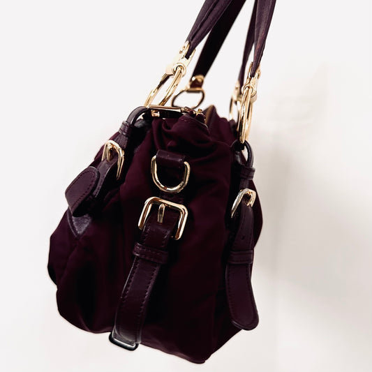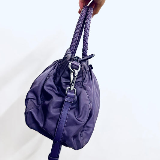 Prada Lavender Purple Bow Ruched Tessuto Classic Logo Nylon & Leather 2-Way Shoulder Sling Shopper Tote Bag