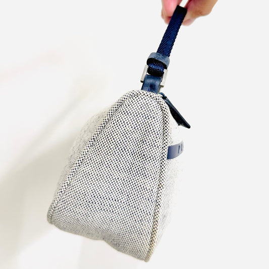 Prada Grey / Navy Blue Tessuto Sport Classic Monogram Logo Nylon Hobo Pochette Baguette Shoulder Bag