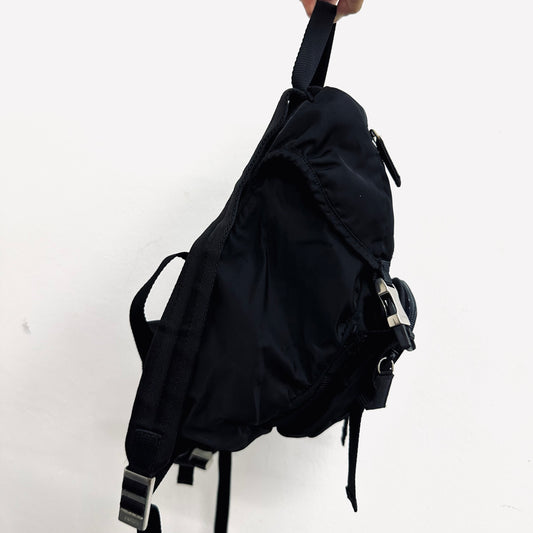 Prada Tessuto Black Classic Logo Nylon Flap Backpack Drawstring Bag