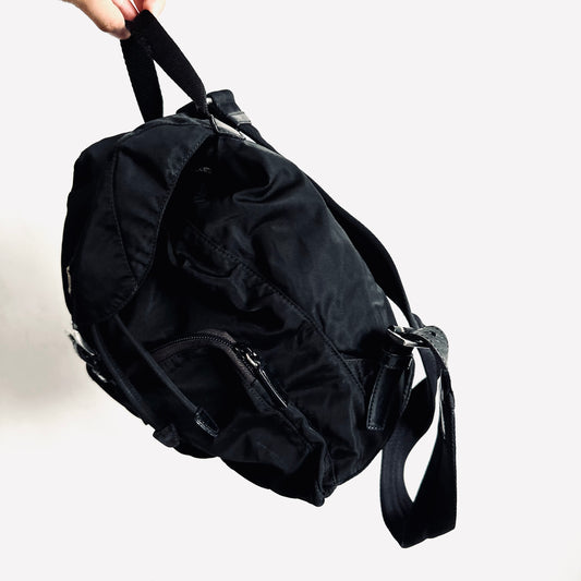 Prada Black Logo Tessuto Vela Classic Nylon & Leather Backpack Bag
