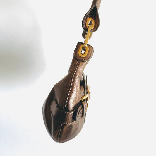 Jimmy Choo Tulita Metallic Brown GHW Leather Hobo Baguette Shoulder Bag