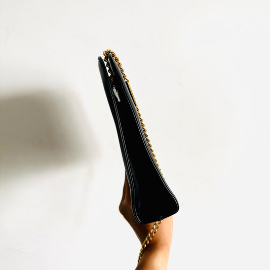 Salvatore Ferragamo Gancini Dark Navy Blue GHW Smooth Leather Chain Shoulder Sling Bag