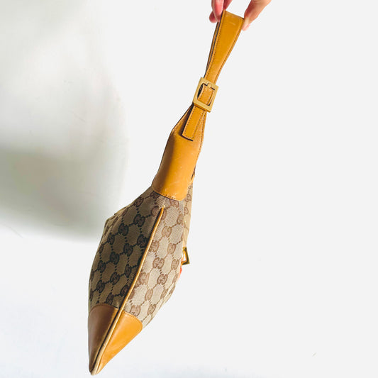 Gucci Cream / Tan Monogram Logo Jackie Vintage Baguette Hobo Shoulder Bag