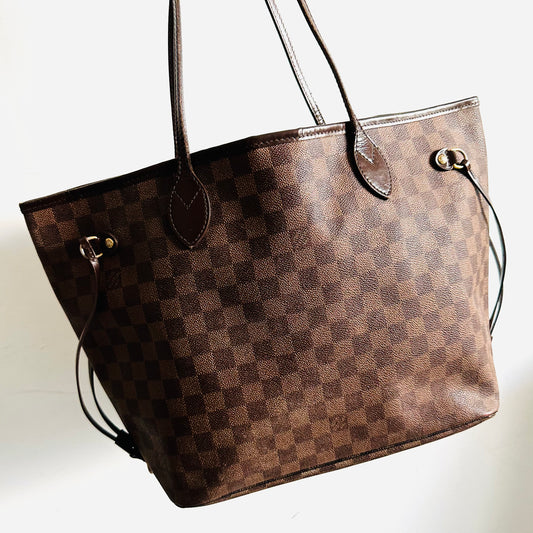Louis Vuitton LV Neverfull MM Damier Ebene DE Monogram Logo GHW Shopper Shoulder Tote Bag