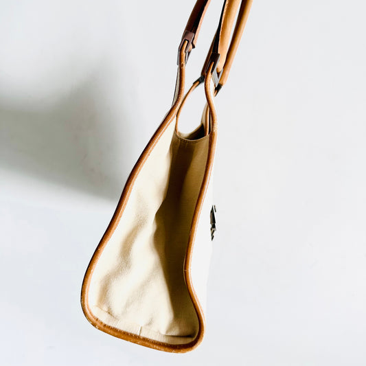 Burberry Small Freya Giant Monogram Logo Shopper Shoulder Tote Bag (Natural / Tan)