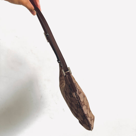 Gucci Brown GG Monogram Logo Small Hobo Pochette Baguette Shoulder Bag