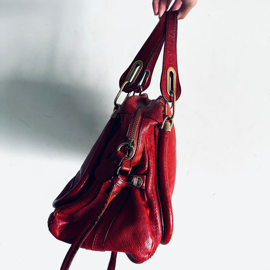 Chloe Paraty Dark Red GHW Classic Leather 2-Way Small Top Handle Shopper Shoulder Sling Tote Bag