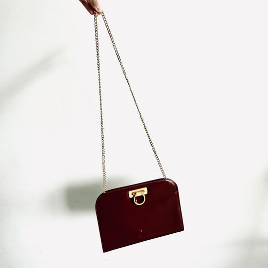 Salvatore Ferragamo Gancini Maroon Burgundy GHW Smooth Leather Chain Shoulder Sling Bag