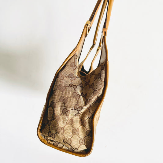 Gucci Beige / Caramel Brown GHW Jackie GG Monogram Logo Baguette Hobo Shoulder Bag