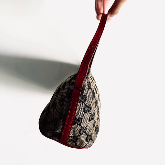 Gucci Black / Ash / Red GG Monogram Logo Mini Hobo Pochette Shoulder Bag