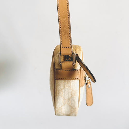 Gucci Cream Beige GHW GG Monogram Logo Small Camera Shoulder Sling Bag