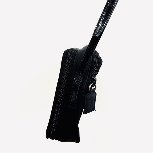 Prada Black Tessuto Monogram Logo Classic Nylon & Leather Double Zip Shoulder Sling Camera Bag