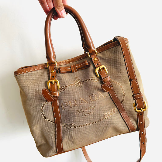 Prada Jacquard Classic Monogram Logo GHW 2-Way Shopper Shoulder Sling Tote Bag