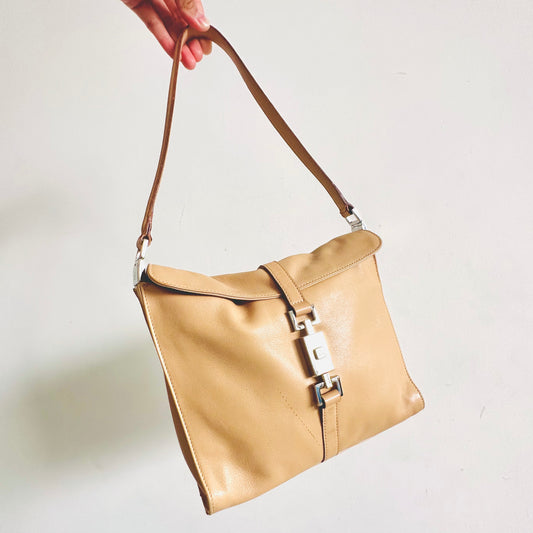 Gucci Beige Leather Jackie Monogram Logo Vintage Hobo Shoulder Bag