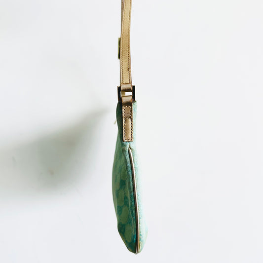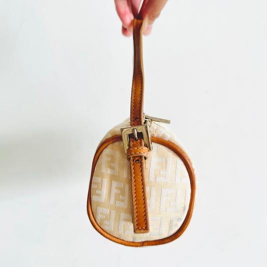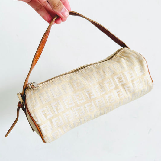 Fendi Beige White FF Monogram Logo Papillon Roller Baguette Hobo Shoulder Bag