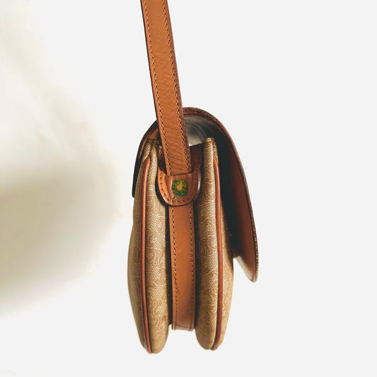 Celine Beige Triomphe Macadam Monogram Logo & Leather Vintage Flap Shoulder Sling Bag