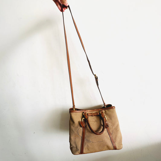 Celine Beige Triomphe Macadam Monogram Logo Oval Half Moon Vintage Shoulder Sling Bag