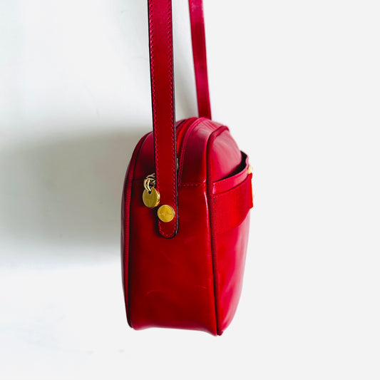 Salvatore Ferragamo Vara Bow Deep Red GHW Logo Smooth Leather Camera Shoulder Sling Bag