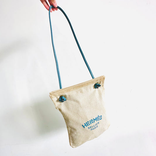 Hermes Aline PM White Toile & Blue Leather Sellier Grooming Shoulder Sling Bag