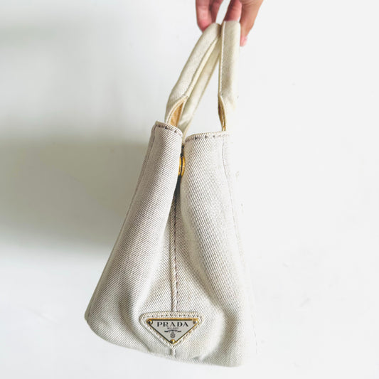 Prada Off White Canapa Small Classic Logo Structured Shopper Tote Bag