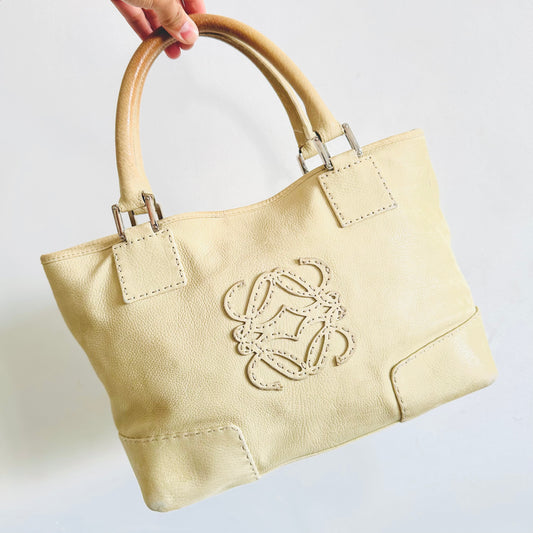 Loewe Cream White Giant Anagram Logo Monogram Nappa Leather Shopper Shoulder Tote Bag