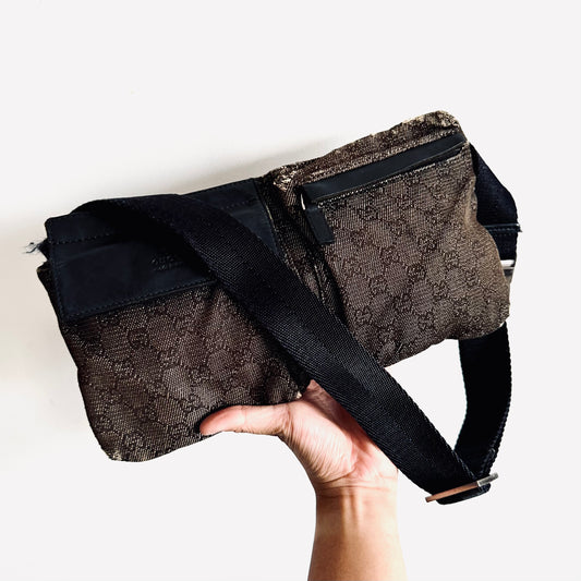 Gucci Black / Dark Brown Sherry GG Monogram Logo Belt Shoulder Sling Bag