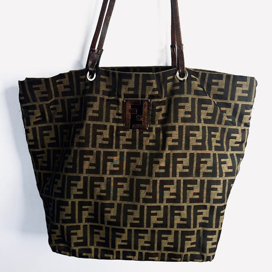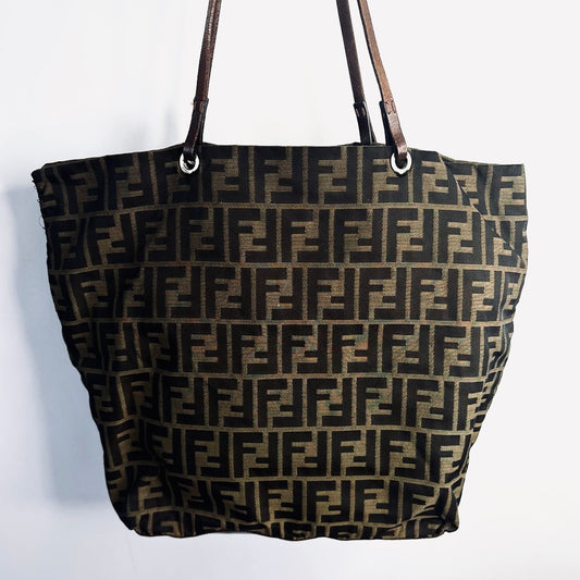 Fendi Dark Brown Zucca FF Monogram Logo Packable Shoulder Shopper Tote Bag