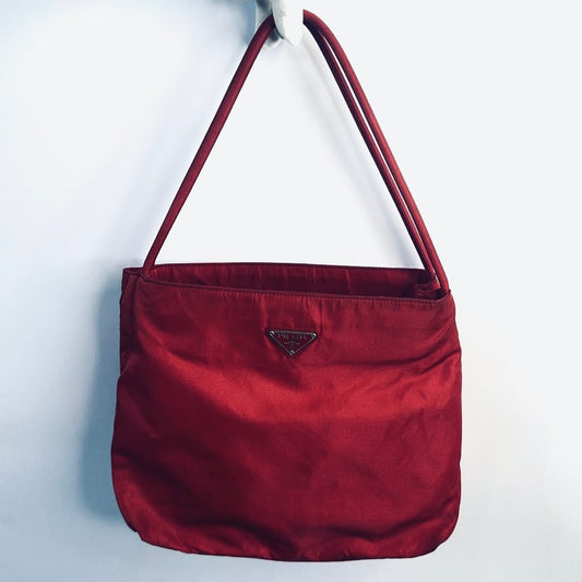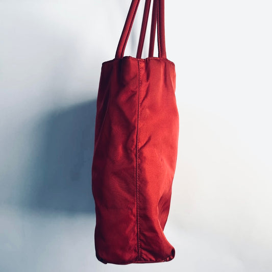 Prada Deep Red Tessuto City Classic Logo Nylon Shopper Shoulder Tote Bag