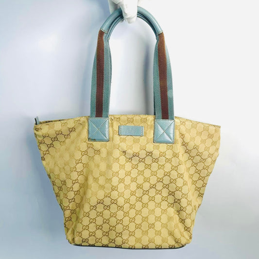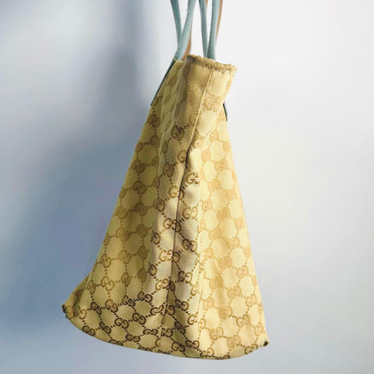Gucci Sherry Beige / Blue GG Monogram Logo Bucket Shoulder Shopper Tote Bag