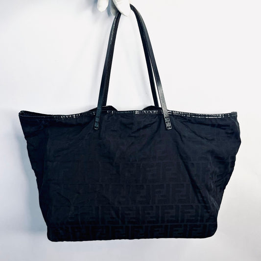 Fendi Black Zucca Zucchino FF Monogram Logo Shoulder Shopper Tote Bag With Pouch