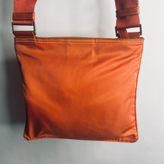 Prada Orange Tessuto Nylon Classic Monogram Logo Small Zipper Shoulder Sling Bag