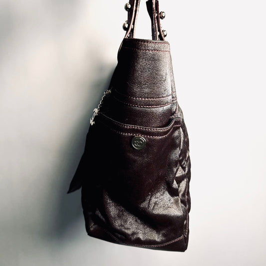 Chanel Dark Brown Paris Biarritz CC Monogram Logo Quilted Fabric & Leather Shopper Shoulder Tote Bag With Pouch 11s