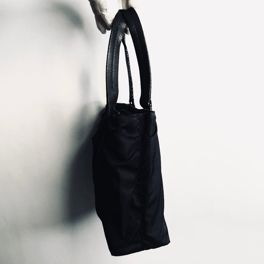 Prada Black Basic Tessuto Nylon Monogram Logo Classic Shopper Tote Bag