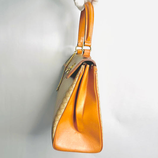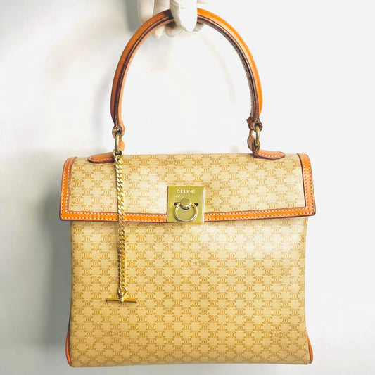 Celine Beige Kelly Triomphe Macadam GHW Monogram Logo Flap Vintage Top Handle Bag