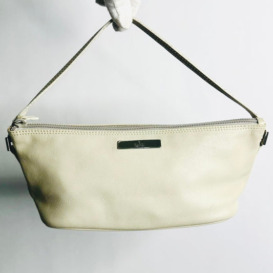Gucci GG Ivory Off White Leather Monogram Logo Mini Hobo Pochette Accessories Shoulder Bag