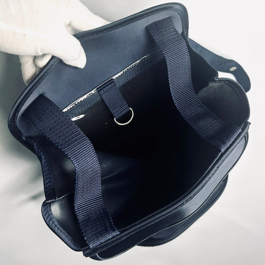 Hermes Navy Blue Voyage Sherpa Limited Edition Monogram Logo Drawstring Backpack Bag
