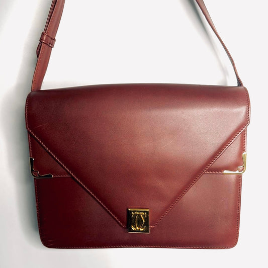 Cartier Must / Mast de Cartier Maroon Burgundy GHW Smooth Leather Flap Shoulder Sling Bag