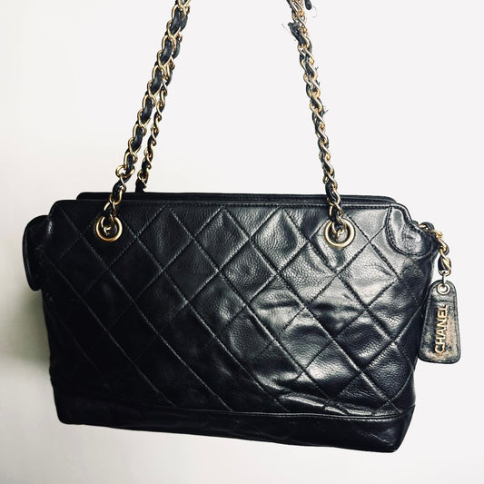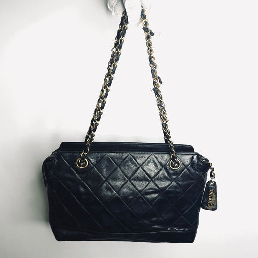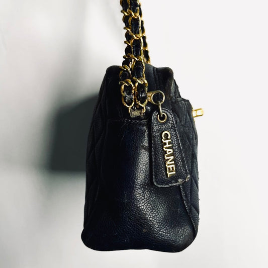 Chanel Black GHW Giant CC Logo Charm Quilted Caviar Vintage Shoulder Sling Bag 3s