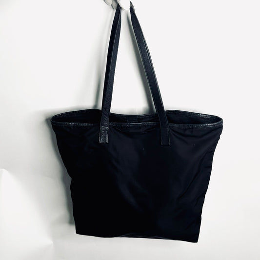 Prada Black Tessuto Classic Logo Nylon Shoulder Shopper Tote Bag